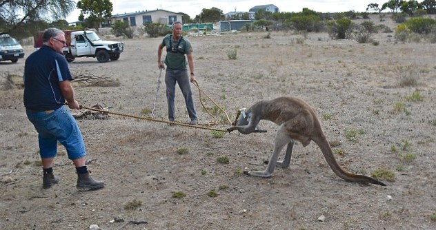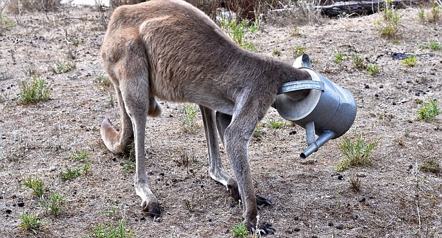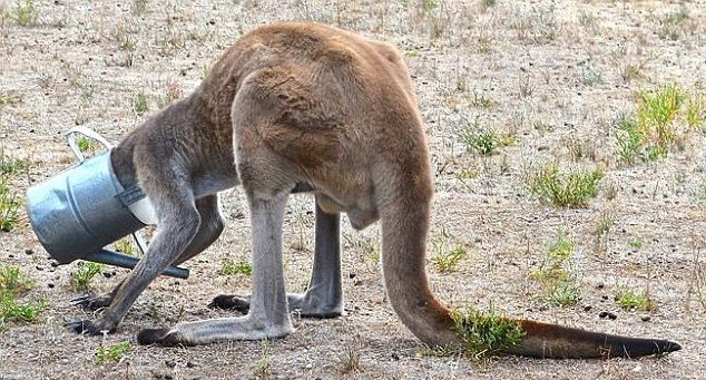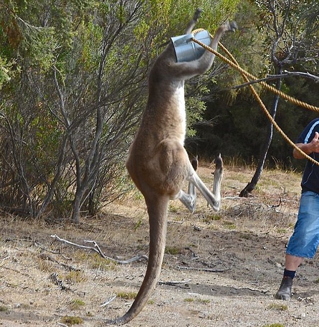 SYDNEY – Un canguro assetato ficca la testa in un secchio di latta e resta incastrato. Per liberarlo sono dovuti intervenire due uomini che hanno legato al secchio delle corde.
