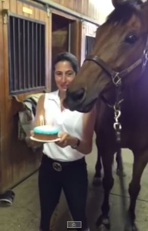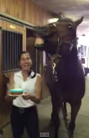 NEW YORK – Jd è un cavallo che vive nell’allevamento Ithilien Stables di New York. al sua proprietaria ha voluto festeggiare il compleanno dell’animale con una bella torta. Jd è stato in grado di spegnere le candeline dopo aver ascoltato la canzoncina “Happy Birthday”. Poi, al termine della canzoncina, ha soffiato leggermente sulla torta spegnendo le candeline. Chissà chi si è mangiato poi la torta: lui o la sua proprietaria?