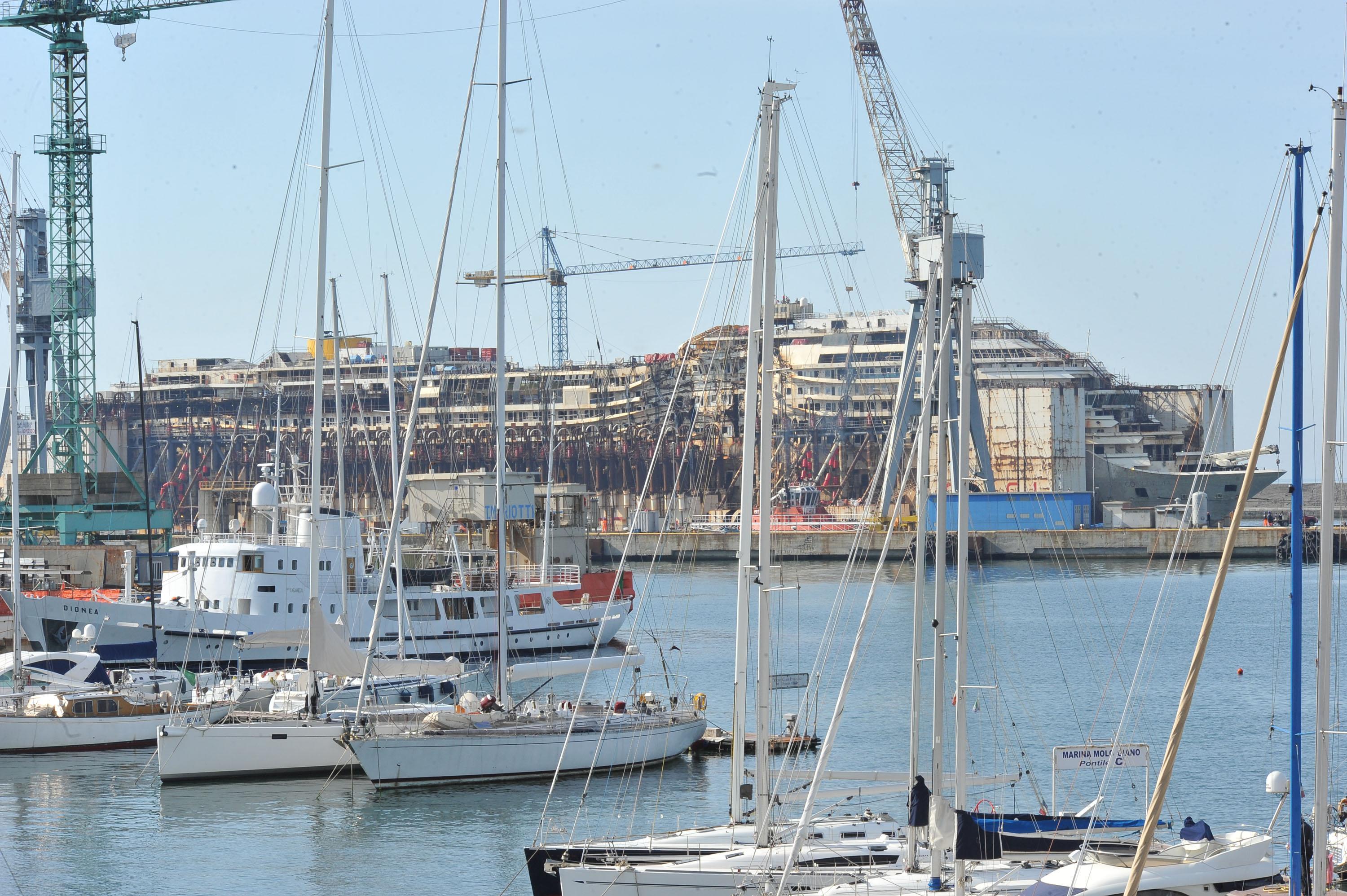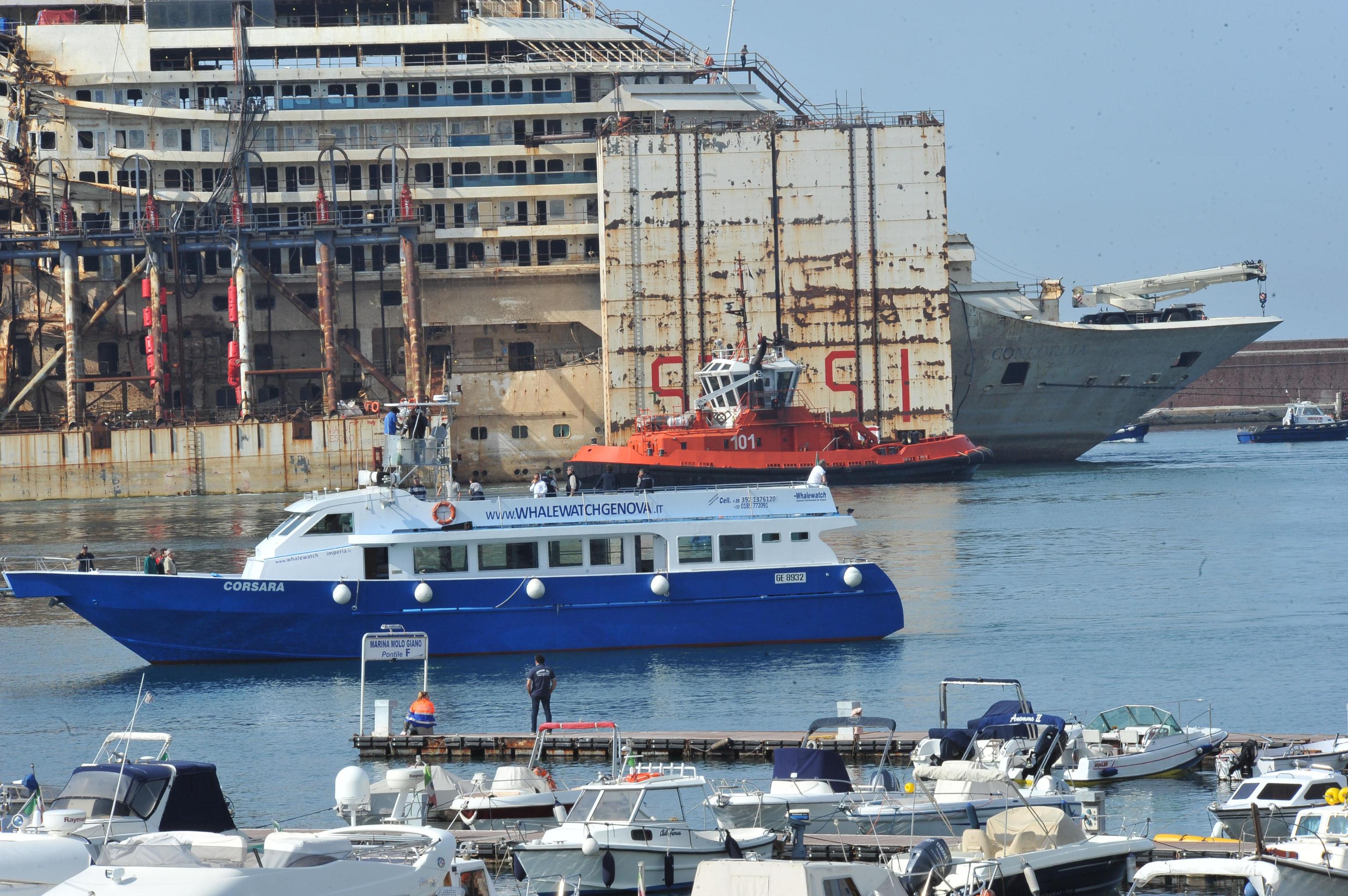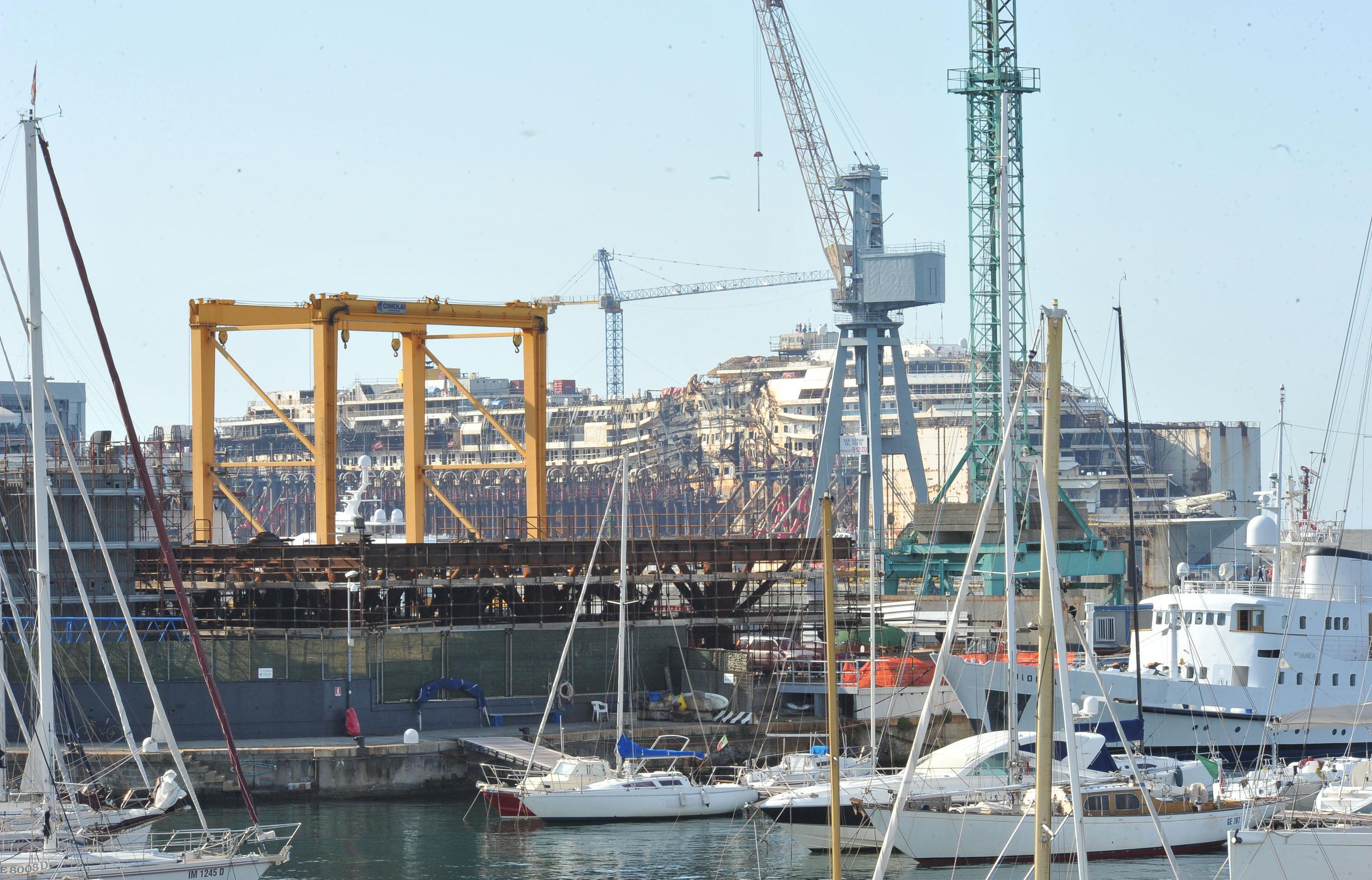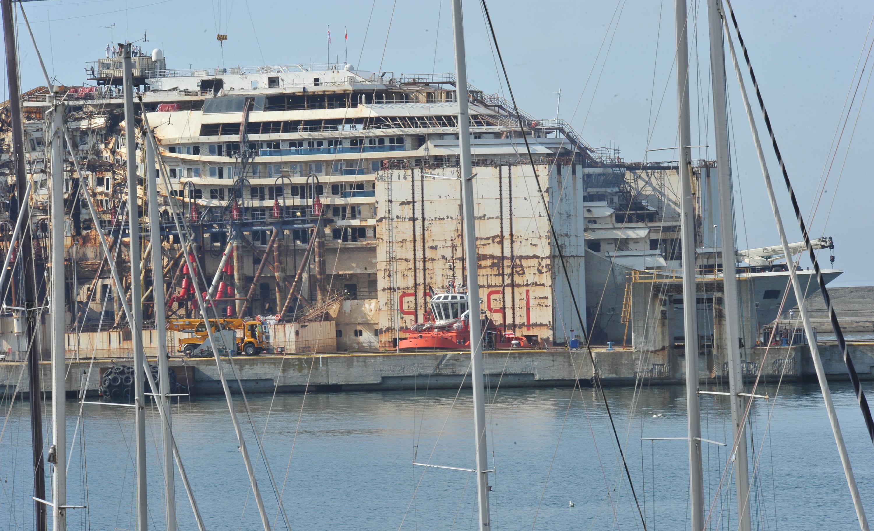 GENOVA – Il relitto della Costa Concordia partito lunedì sera dalla banchina del porto di Voltri-Prà ha raggiunto l’area dell’ex Superbacino dove verrà definitivamente smantellata. Il relitto è in banchina all’interno dell’ex Superbacino. E’ stato già fissato il primo cavo ad una delle dodici bitte che metteranno il relitto in sicurezza. Le operazioni potranno dirsi concluse con il fissaggio completo dei dodici grossi cavi fissati alle bitte della banchina.