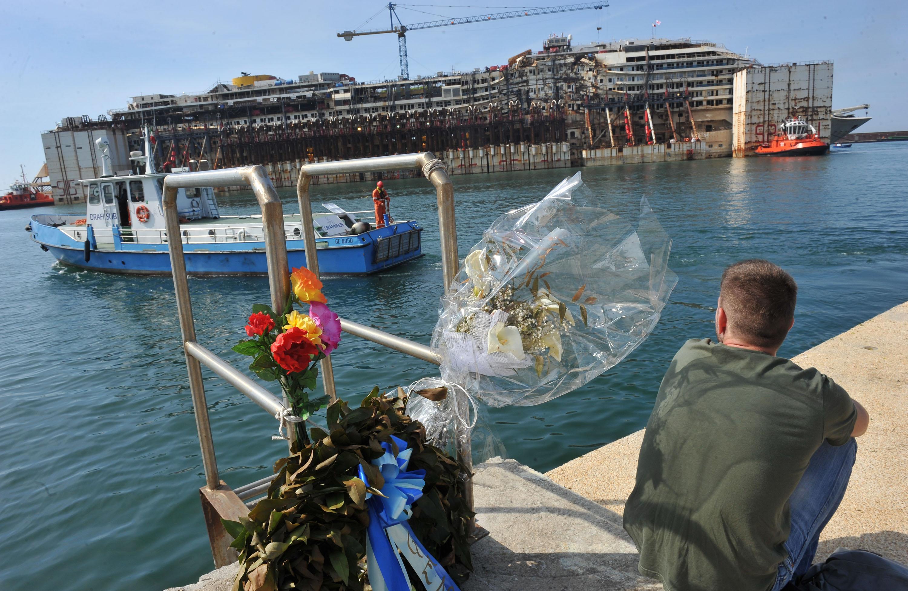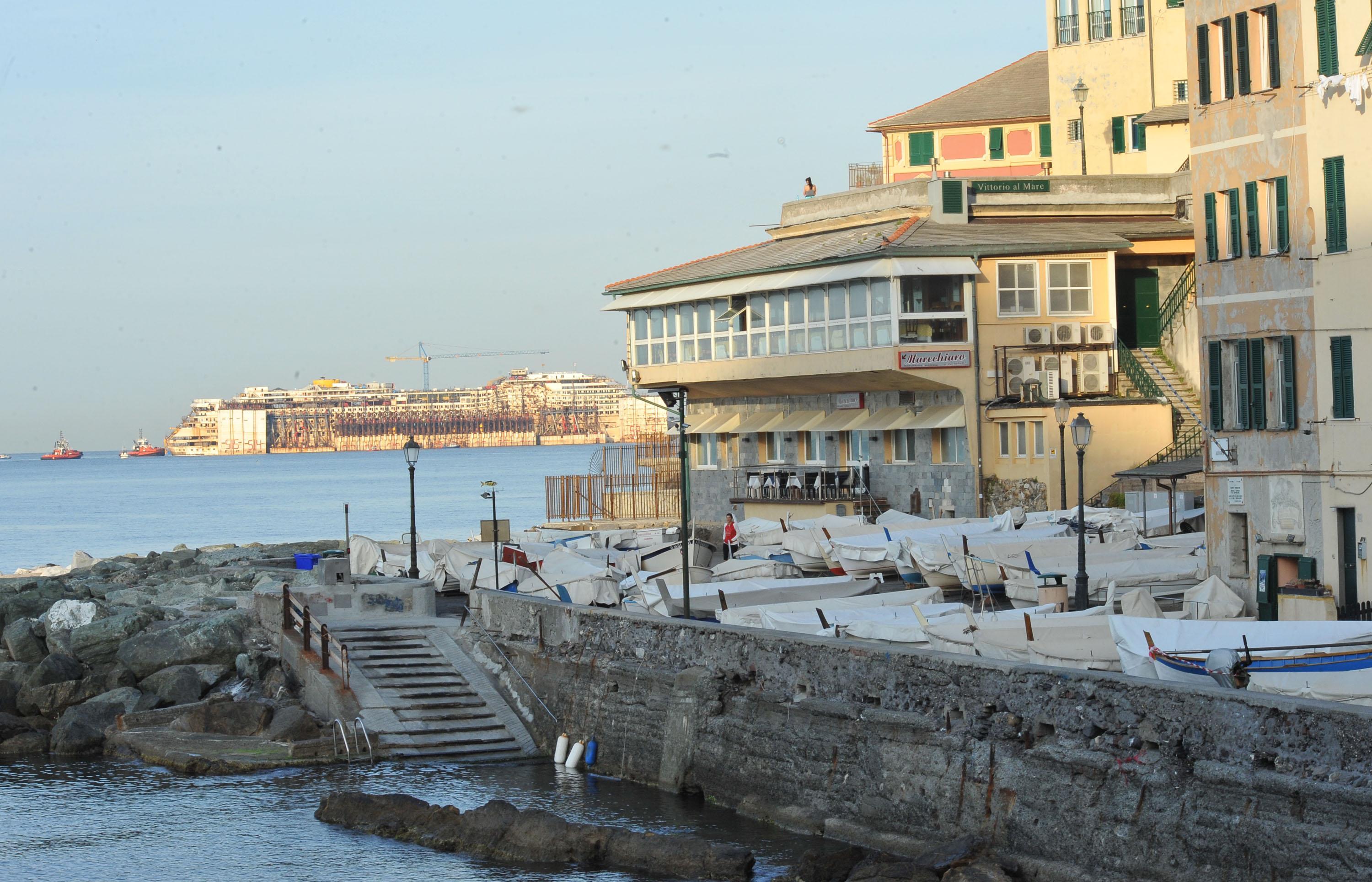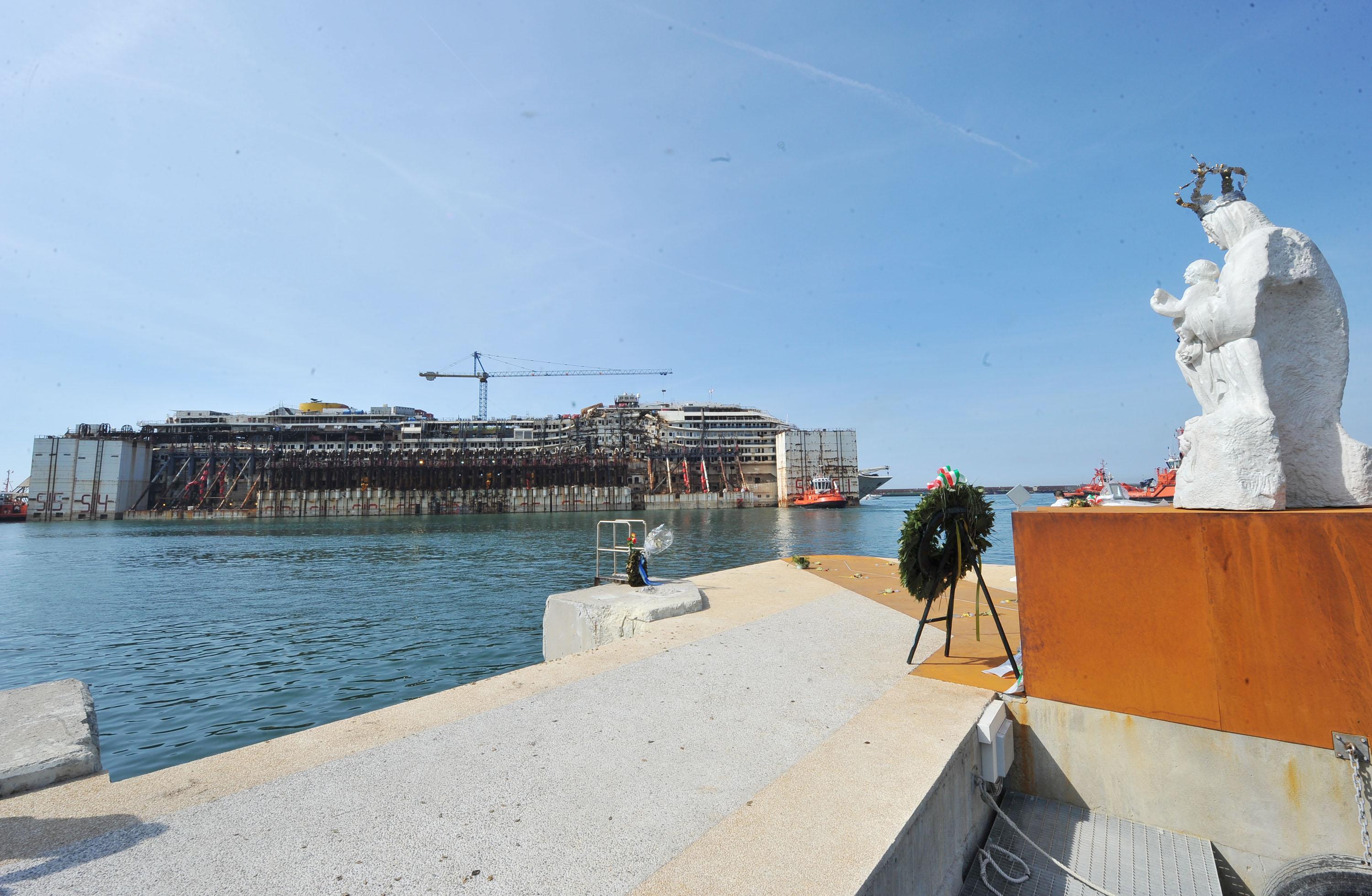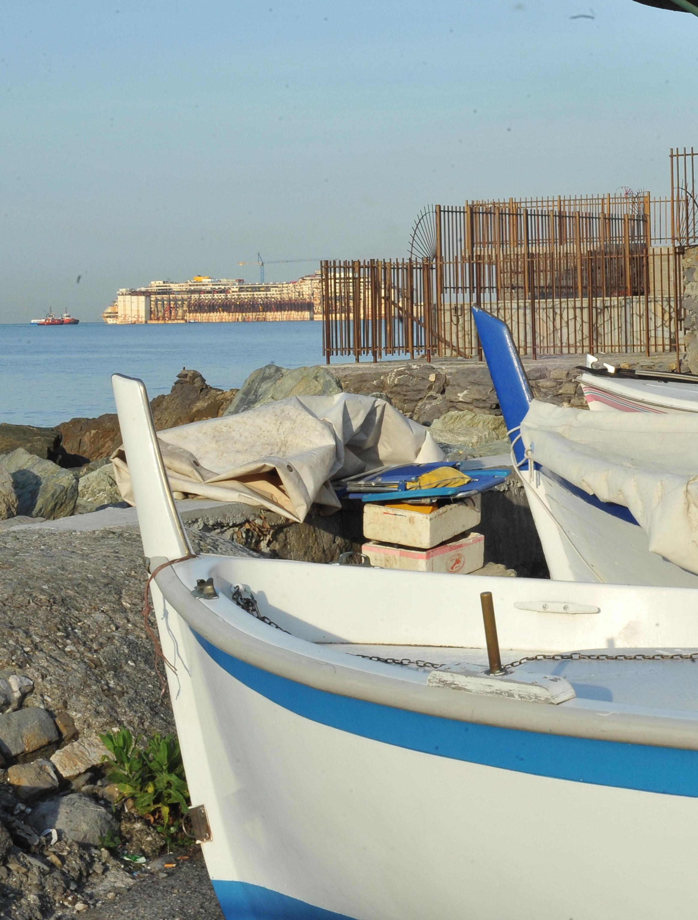 GENOVA – Il relitto della Costa Concordia partito lunedì sera dalla banchina del porto di Voltri-Prà ha raggiunto l’area dell’ex Superbacino dove verrà definitivamente smantellata. Il relitto è in banchina all’interno dell’ex Superbacino. E’ stato già fissato il primo cavo ad una delle dodici bitte che metteranno il relitto in sicurezza. Le operazioni potranno dirsi concluse con il fissaggio completo dei dodici grossi cavi fissati alle bitte della banchina.