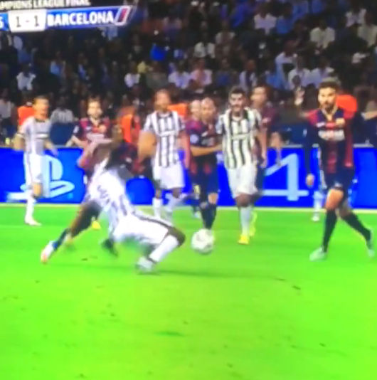Il terzino destro brasiliano è stato grande protagonista della finale vinta 3-1 sulla Juventus, nonché al centro dell’episodio più contestato: il presunto fallo da rigore su Pogba quando ancora si era sull’1-1 (per l’esattezza 30 secondi prima del gol di Suarez).