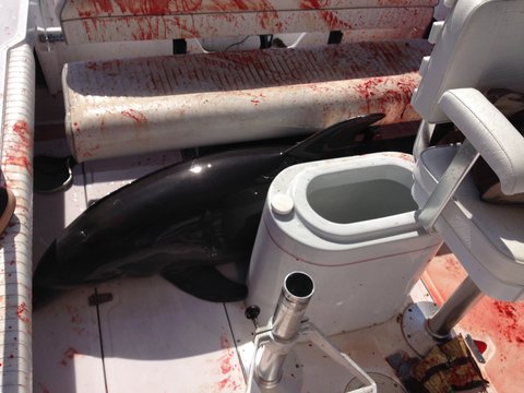 La gita in barca si è però trasformata in un inferno: un delfino da 150 chili che stava saltando intorno alla loro barca è piombato all’interno ferendosi pesantemente. La famiglia Frickman ha vissuto momenti di panico: il delfino è caduto sulle gambe della mamma di Chrissie che era a bordo e le ha rotto le caviglie. Poi ha colpito ripetutamente con la coda Chrissie e i due figli Tristan, 12 anni, e Courtney, 16 anni. Per fortuna nessuno è caduto in mare. “Non c’era modo di farlo scendere dalla barca” ha raccontato Dirk. E infatti il delfino è morto a bordo. La famiglia è tornata a terra ed ha diffuso il filmato e le foto della barca insanguinata.