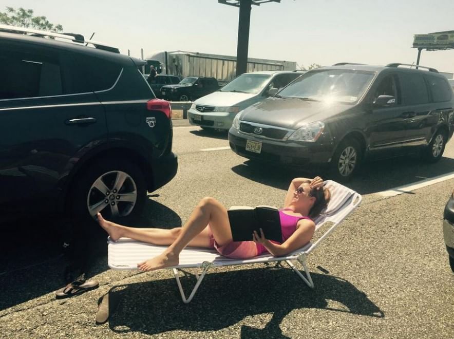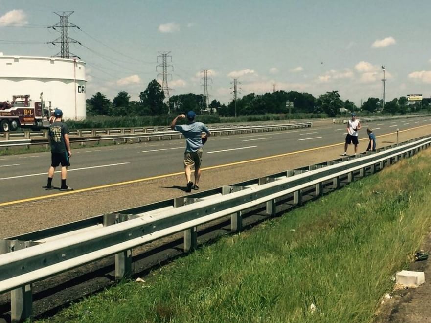 NEW YORK – Auto e camion in fila sulla New Jersey Turnpike, autostrada che percorre l’omonimo Stato americano, a causa di un grave incidente avvenuto sotto un cavalcavia, che ha coinvolto un camionista che ha perso la vita. Per passare il tempo, molta gente si è messa a giocare a football americano e a baseball; altri hanno tirato fuori una sdraio per mettersi a prendere il sole.