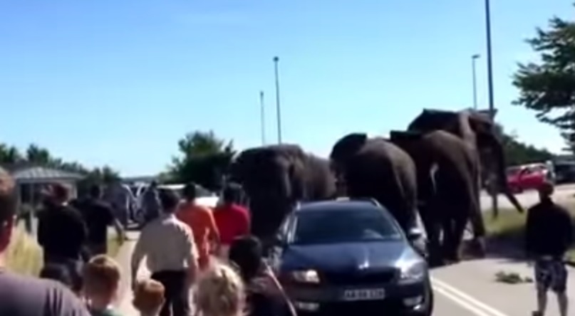 ROMA – Una passeggiata davvero chiassosa, quella di tre elefanti africani di un circo danese. Siamo a Karrebæksminde, cittadina danese in cui ha fatto tappa un circo. Gli addestratori hanno deciso di portare i tre elefanti a rinfrescarsi in un corso d’acqua, al ritorno gli animali hanno attirato l’attenzione dei passanti e così la folla di persone ha finito per indispettirli. Nel video si vedono i tre poveri elefanti agitati da tutti quegli umani che corrono in giro.