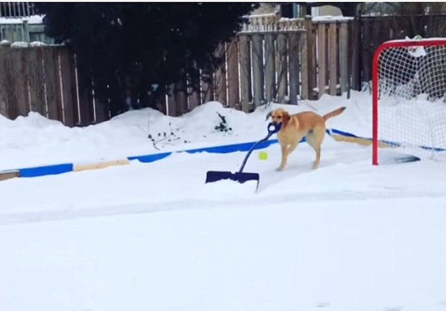 Il video su YouTube di questo cane che vive a Guelph in Ontario (Canada), è intitolato “Elsa shoveling the backyard rink” sta già facendo il giro del web raccogliendo già 45mila clic in soli 5 giorni.