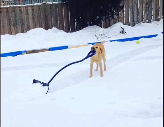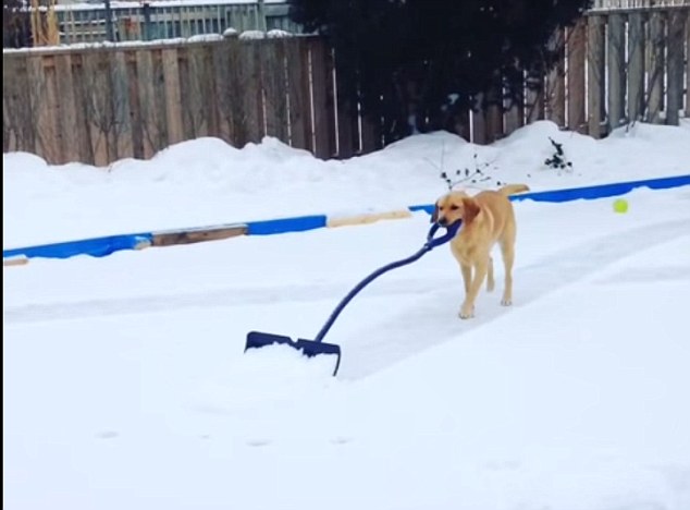 GUELPH (ONTARIO, CANADA) – Elsa è una Golden Retriever che ha trovato un modo curioso di passare il tempo scorrazzando in giardino: Elsa infatti, aiuta i suoi padroni a spalare la neve. La cosa incredibile di questo video è il fatto che il cane dopo aver spalato una “striscia” di neve, svuota la pala e torna indietro per raccogliere altra neve.