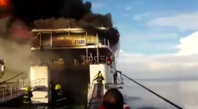 ROMA – Un incendio a bordo e un unico modo per salvarsi: buttarsi in mare. Lo hanno fatto alcuni dei 544 passeggeri a bordo del traghetto che aveva appena attraccato a Ormoc, nelle Filippine.
