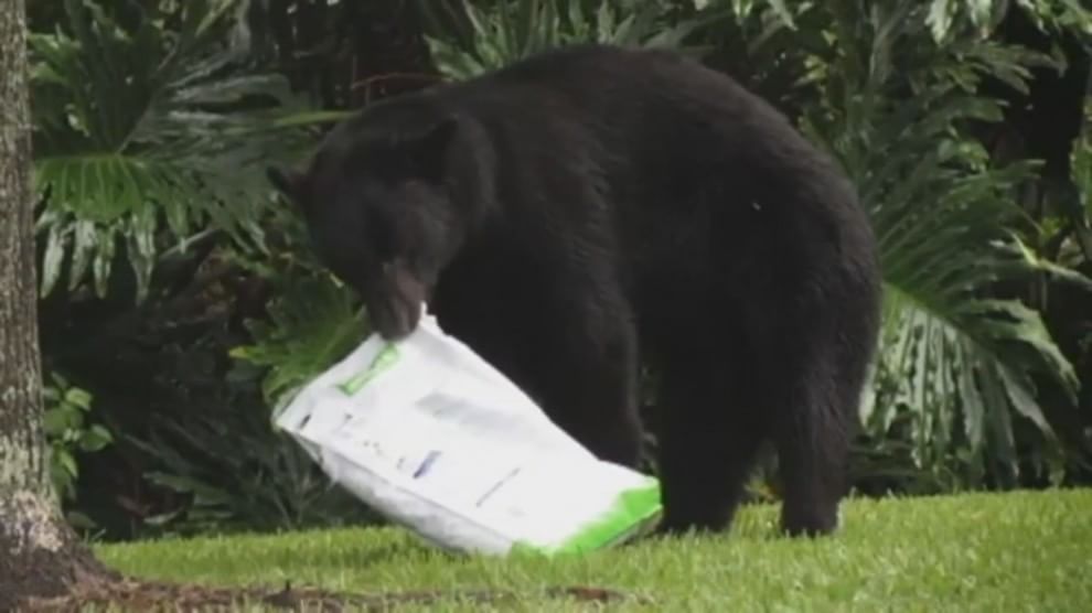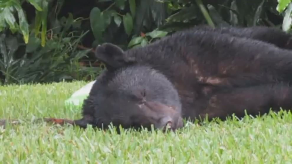 SANFORD (FLORIDA, STATI UNITI) – Un grande orso bruno è arrivato nel giardino di una casa di Seminole County in Florida e si è mangiato 10 chili di cibo per cani. Poi, tramortito, si è addormentato sul prato davanti all’abitazione.
