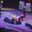 E sulle note di ‘Under pressure‘, vecchio successo dei Queen e David Bowie, mantiene la promessa. Con la gamba ingessata appoggiata sull’amplificatore, Grohl torna sul palco e riprende a cantare.