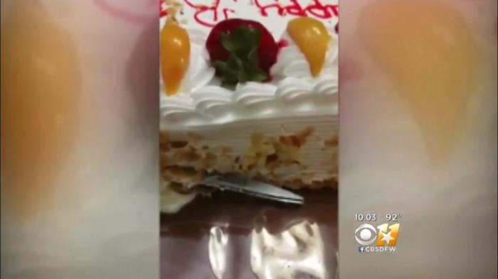 ROMA – Un paio di forbici nella torta di compleanno. E’ quello che ha trovato una donna di Arlington, Yoly Nava. La donna, che quella torta la aveva comprata per la mamma spendendo la bellezza di 60 dollari, non l’ha presa benissimo. Ha filmato il tutto e postato il video su Facebook.