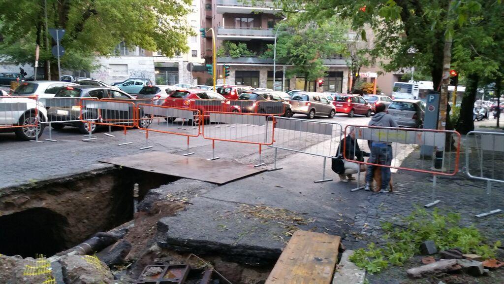 ROMA – Un breve ma intenso nubifragio, con tanto di grandinata, ha colpito Roma mercoledì 27 maggio. Ci sono stati allagamenti di tunnel e negozi, voragini e cedimenti di strade, deviazioni di mezzi pubblici e lunghe code di auto. Una grossa voragine profonda otto metri e larga sei si è aperta in viale Somalia, nel quartiere Africano, e il tratto di strada è stato chiuso.
