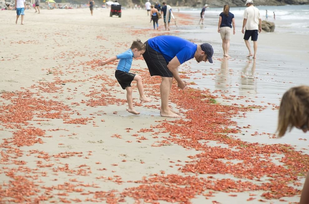 Questi piccoli crostacei solitamente vivono al largo della penisola messicana della Baja California, a sud di San Diego, e così a nord non si vedevano da decine di anni. A spingerle oltre il confine probabilmente sono state le correnti d’acqua calda.