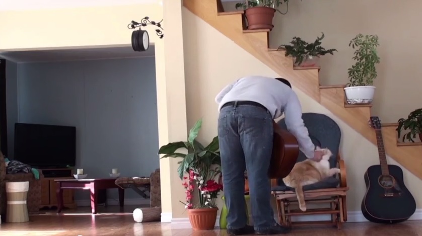 ROMA – “Amo il mio gatto ma lui non ama la mia musica”. Scrive così Dave Fortin, il musicista che vive in casa con il gatto dal pelo rosso che si vede in questo filmato. L’animale sta dormendo e viene allontanato in malo modo dal suo proprietario che si vuole sedere sulla sedia per suonare la chitarra.