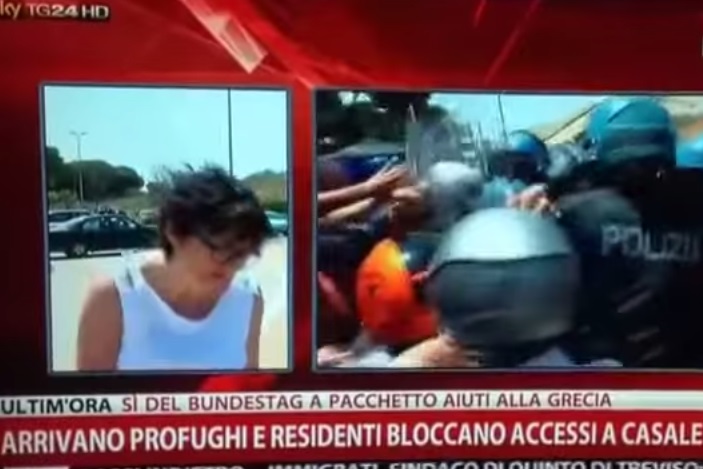 La cronista stava spiegando lo stato degli scontri tra i cittadini e la polizia nei pressi di una scuola indicata dal Comune come stallo momentaneo per un centinaio di profughi. Aversa inizia a parlare, cerca di resistere, ma poi cede e dice: “Scusate, mi sto sentendo male”. Negli ultimi secondi si vede la giornalista accasciarsi a terra.