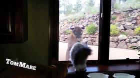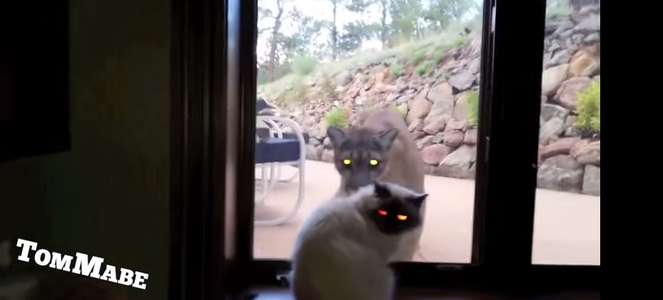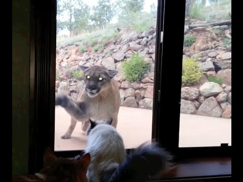 A casa di amici, negli Stati Uniti, ha ripreso con lo smartphone una scena davvero curiosa. Nel filmato si vede un grosso puma che cerca di entrare in casa, grattando con la zampa contro il vetro della finestra. Ma ha un ostacolo davanti a sé: il gatto dei padroni di casa, piazzato proprio davanti a lui, dietro la finestra, e per nulla intimorito.