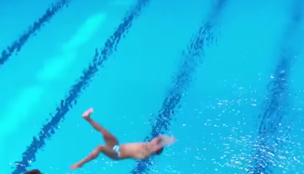 Il video, sommando le varie versioni disponibili su YouTube, ha totalizzato più di due milioni di clic. I due nuotatori dimostrano di avere molta poca dimestichezza con l’acqua.