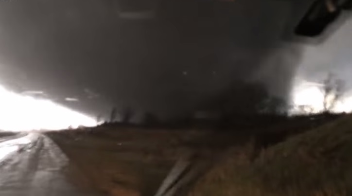 ROCHELLE (ILLINOIS, STATI UNITI) – Un uomo che sta viaggiando con la sua auto a Rochelle in Illinois, si ritrova quasi improvvisamente all’interno di un gigantesco tornado che si sta avvicinando., L’uomo, dopo essersi reso conto della pericolosità, desiste dall’idea di restare a filmarlo da vicino e decide di fare marcia indietro. Secondo il servizio meteorologico il tornado aveva raggiunto una velocità di 320 chilometri all’ora.