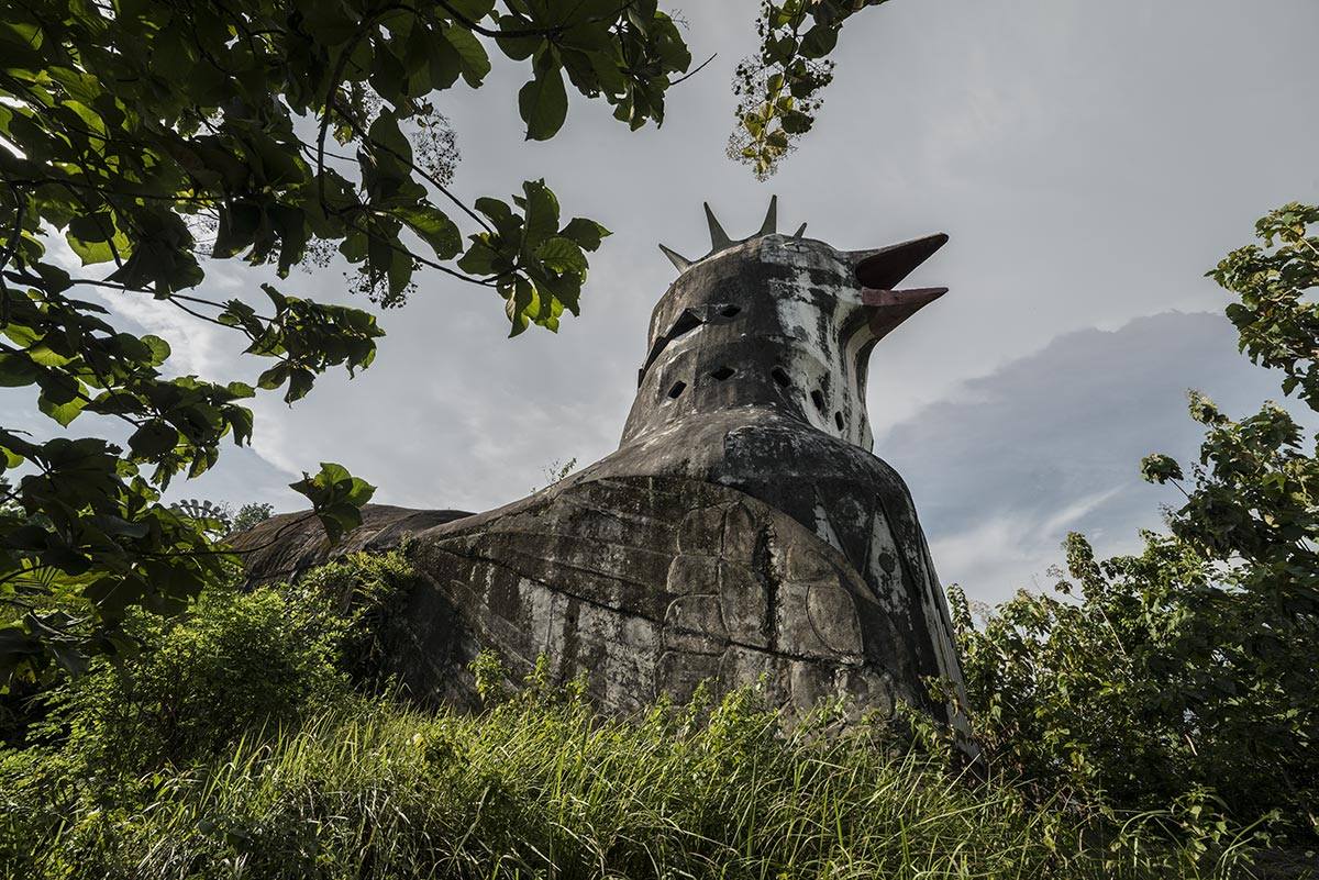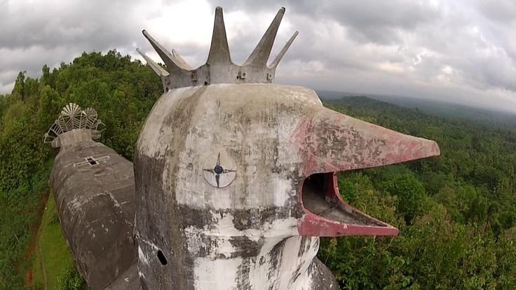 JAVA – Si chiama Gereja Ayam o Chicken Church ed è una gigantesca chiesa a forma di pollo nascosta nella giungla indonesiana. L’immensa struttura giace abbandonata sulle colline di Magelang, nel cuore di Java, l’isola principale dell’arcipelago indonesiano, ed ogni anno attira centinaia di turisti, curiosi e pellegrini di diversi credi, che accorrono da tutto il mondo per ammirarla e fotografarla. In realtà, secondo il suo ideatore, non è né una chiesa né un pollo, ma una “casa di preghiera a forma di colomba”. La sua realizzazione si deve all’architetto Daniel Alamsjah che, nel 1990 durante un viaggio a Jakarta, a circa 500 km dal sito in cui fu costruita, ebbe una visione divina.