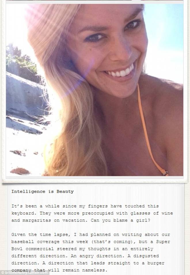 La reporter della ESPN, dopo questa vicenda è stata sospesa per qualche giorno ed è stata costretta a scusarsi pubblicamente con Gina Michelle, la vittima dell’assalto verbale. Michelle dal canto suo, ha deciso di non replicare agli insulti ricevuti. Quando ha visto la sua macchina attaccata al rimorchiatore, sotto gli occhi di una telecamera di sicurezza la McHerny ha iniziato a insultare Gina all’uscita del ristorante in cui stava cenando, dipendente della Advanced Towing, il servizio di rimozione della città della Virginia, dandole della grassa e della stupida. “Sei felice di fare questo lavoro? – ha attaccato Britt – Io ho un cervello e tu no”.