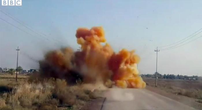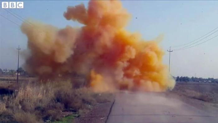 MOSUL – Bombe al cloro confezionate in casa dai jihadisti dell’Isis vengono fatte esplodere in Iraq. In un servizio la Bbc mostra l’esplosione degli ordigni, che sprigionano gas clorino dal fumo arancione velenoso che brucia i polmoni e fa stare malissimo chi lo respira. A confermare l’utilizzo delle bombe le autorità irachene.