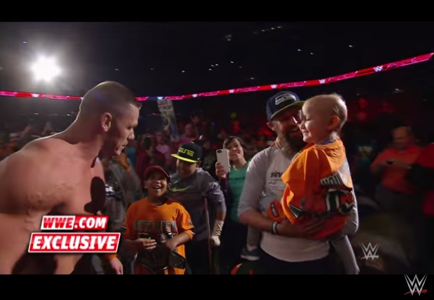 John Cena, insieme ad un altro wrestler, Sting, ha abbracciato, commosso, la piccola e coraggiosa fan. Questo il video caricato su YouTube.