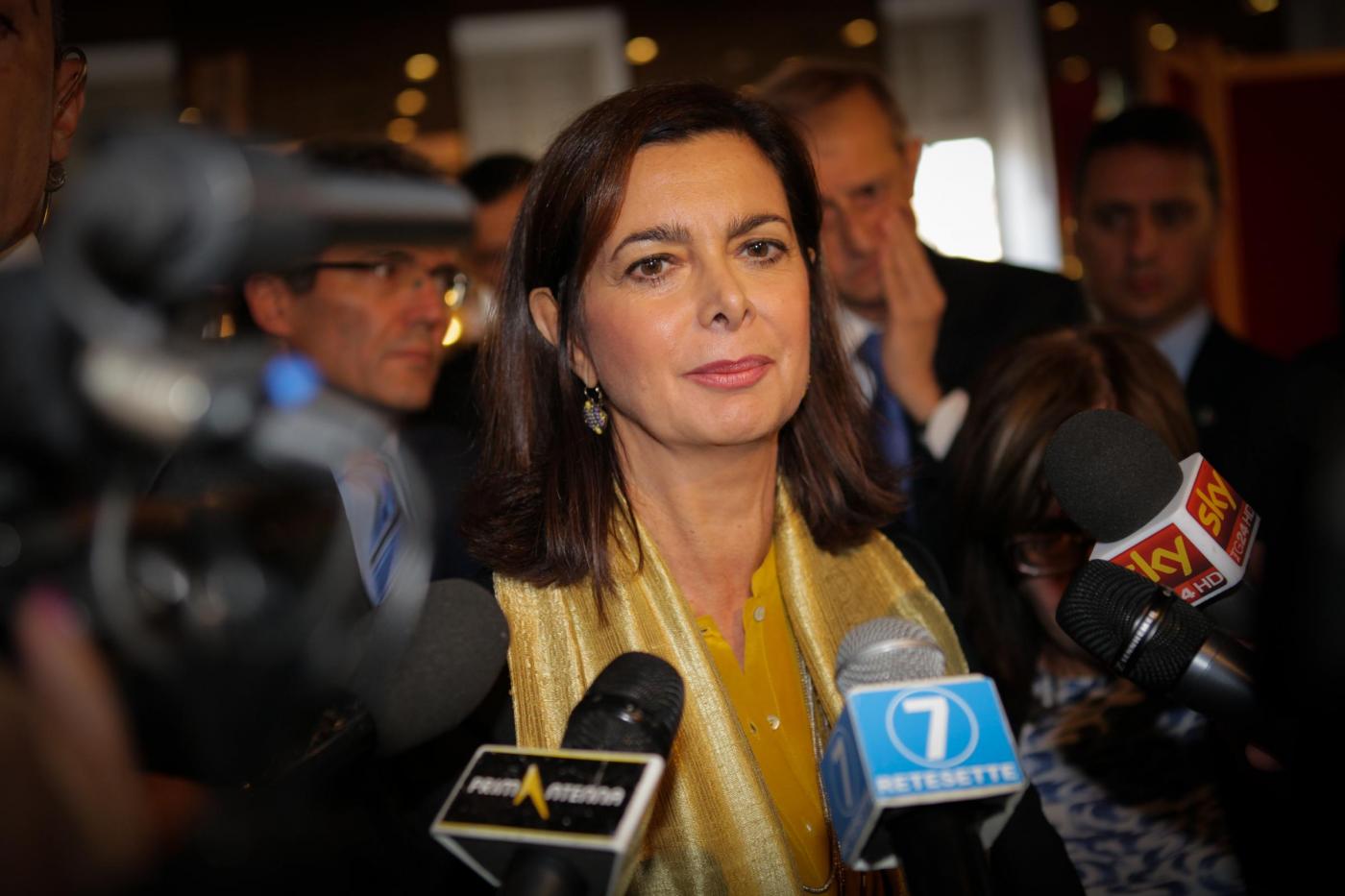 e così la obbediente Boldrini fa, passando in un nanosecondo a un sorriso un po’ finto e gommoso, ma certo più accettabile.