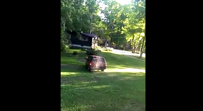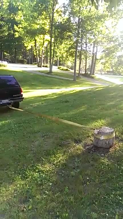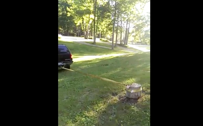 ROMA – Alcuni ragazzi americani legano con una corda, un tronco mozzato che si trova su un prato di una casa. All’altra estremità della corda c’è il suv di uno di loro. una volta fatto il nodo, i ragazzi accelerano con lo scopo di rimuovere il pezzo d’albero e si ritrovano con l’auto ammaccata. Il tronco, infatti vola in alto e finisce sul vetro posteriore dell’auto come se fosse un proiettile.