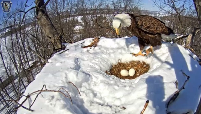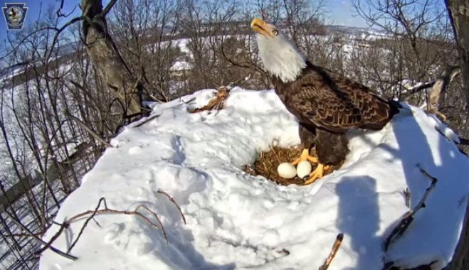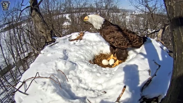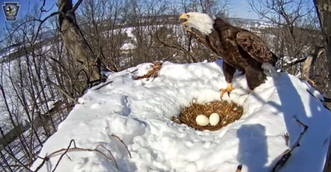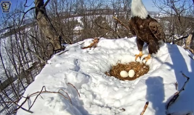 HANOVER (PENNSYLVANIA, STATI UNITI) – “Ho visto quest’aquila che riscaldava le sue due uova dopo la caduta di 25 centimetri di neve e dato che si trattava di un momento molto spettacolare da riprendere, ho deciso di condividerlo sul web”. Scrive così su YouTube l’utente che ha pubblicato questo filmato che proviene dal Codorus State Park di Hanover in Pennsylvania.