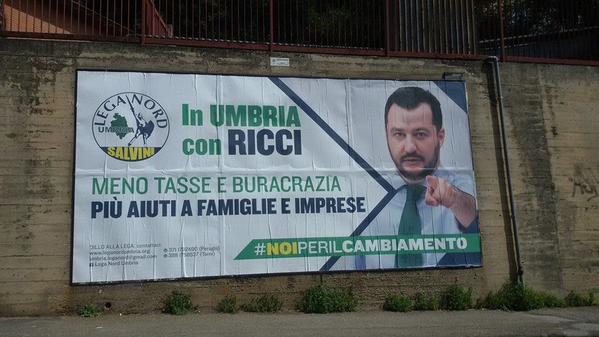 Elezioni Umbria, errore su manifesto Matteo Salvini: “Buracrazia” FOTO