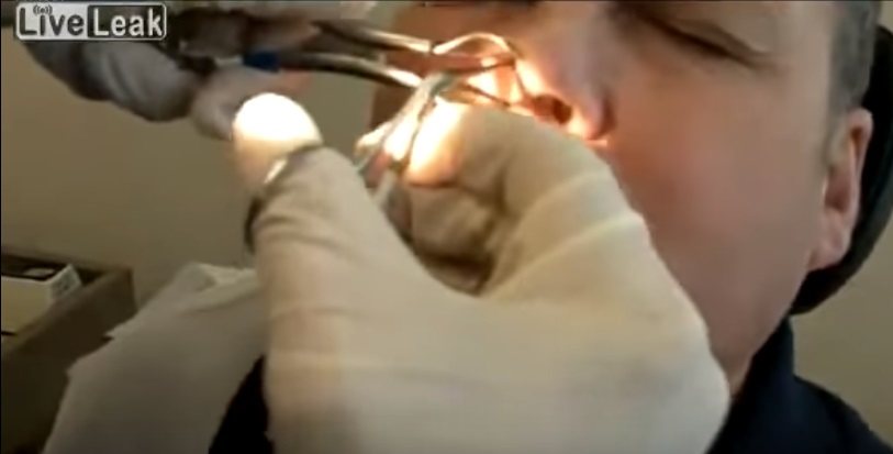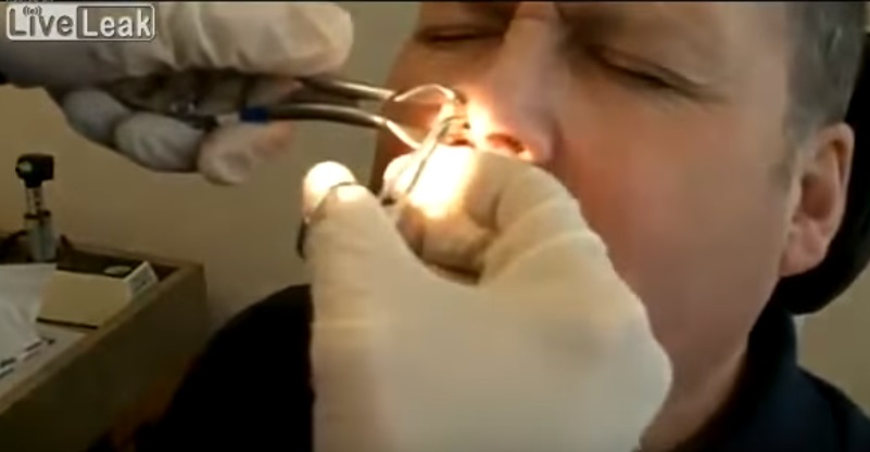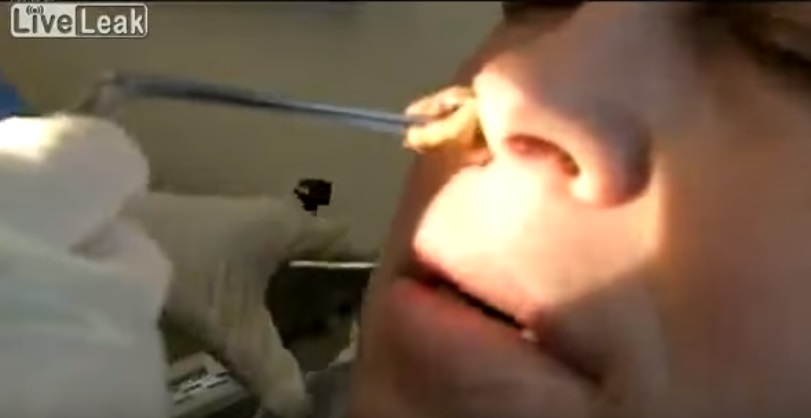 ROMA – Un medico scava nel naso di un paziente con la pinza ed ecco cosa ne estrae: una gigantesca caccola, un enorme pezzo di moccio secco, che è proprio disgustosa da vedere. In termini scientifici, si tratta di muco nasale essiccato che, informa Wikipedia,
