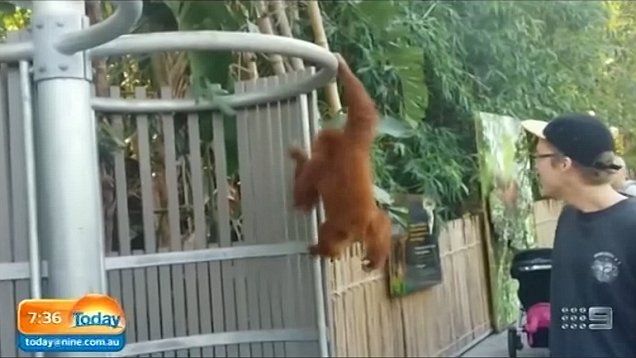 PERTH (AUSTRALIA) – Una femmina di orango di 5 anni che vive allo zoo di Perth in Australia, è uscita dal suo recinto per andare a farsi una passeggiata nello zoo, in mezzo ai visitatori esterrefatti. Teliti, questo il nome del giovane orango, è saltata fori dal recinto, salita su un tetto e scesa nella zona aperta al pubblico: qui, ha rimediato non si sa come una bottiglia d’acqua ed è stata riaccompagnata dai custodi nell’area protetta dello zoo, in attesa di essere inserita di nuovo nel recinto che condivide con sua madre.