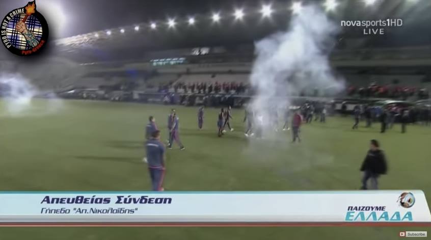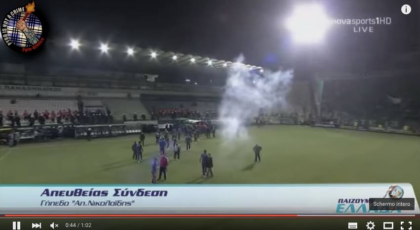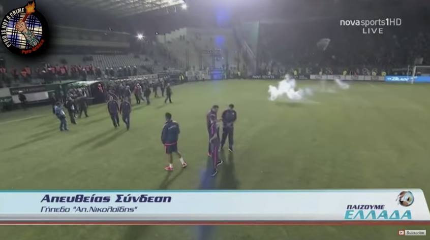 Già prima dell’inizio della partita tifosi senza biglietto avevano cercato di entrare lo stesso prendendo d’assalto i cancelli, scontrandosi con la polizia e lanciando pietre e petardi. Riportiamo di seguito alcuni video da YouTube che testimoniano gli incidenti prima della partita tra il Panathinaikos e l’Olympiakos.