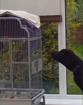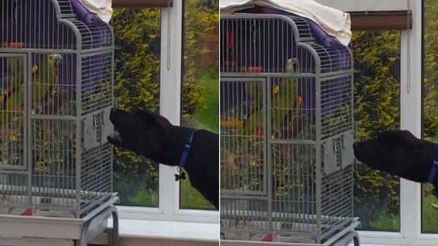LONDRA – Un Labrador nero che le canta, di santa ragione, a un pappagallo chiuso in gabbia. E il pappagallo alla fine si vendica…abbaiando a sua volta al cane. E’ un video davvero simpatico quello che arriva dalla Gran Bretagna. Nel filmato si vede il pappagallo riprodurre perfettamente il verso del cane, tanto che alla fine il quadrupede deve cedere alla “superiorità ” del pennuto.