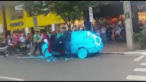A poco a poco le persone che passavano di lì hanno cominciato ad affollare il marciapiedi assistendo divertiti alla messa in opera dello scherzo. Quando il proprietario è tornato si è infilato in auto visibilmente infastidito ed è andato via senza commentare.