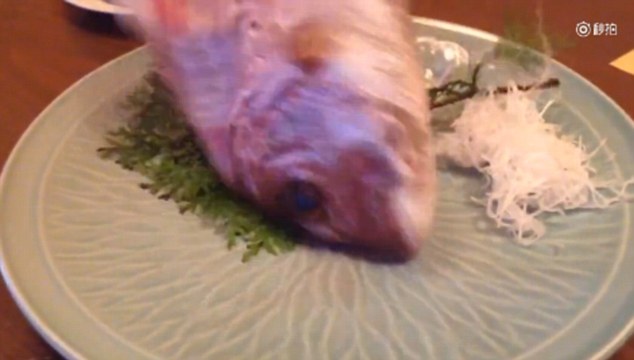 Ad un certo punto, come si vede nel video, qualcosa nel piatto comincia a muoversi. Prima è un movimento impercettibile della pinna del pesce. Poi il tremore si fa più percepibile. Alla fine il mezzo pesce salta via dal piatto terrorizzando i clienti. La prossima volta, prima di ordinare del sashimi, ci penseranno due volte. Forse anche di più.