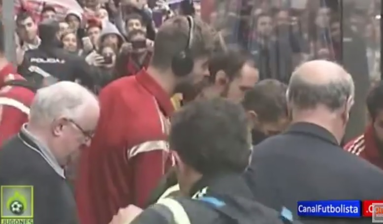 MADRID – La Spagna, impegnata in amichevole con la Costa Rica a Leòn, è arrivata con il bus nell’albergo nel quale alloggerà nella cittadina castigliana. Quando però dal bus scende anche Gerard Piquè si scatena l’ira dei tifosi.