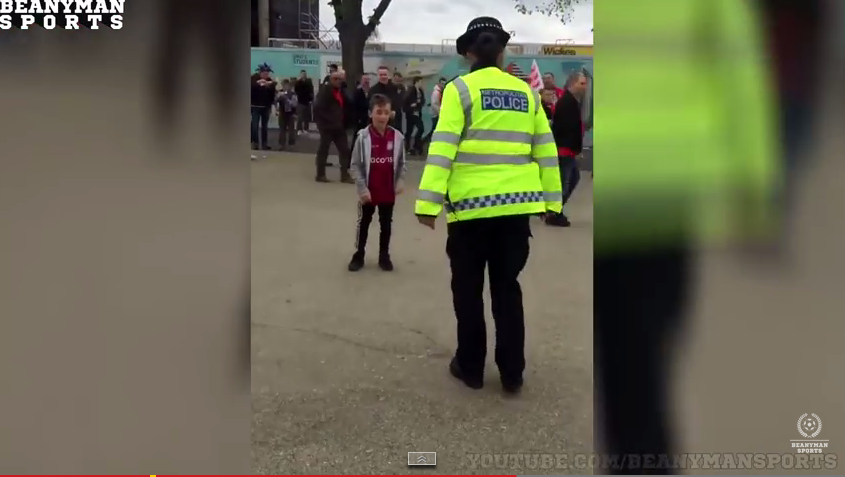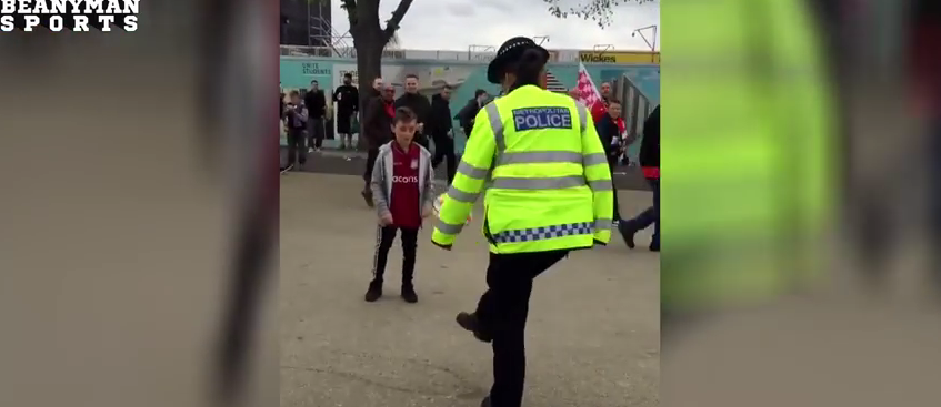LONDRA, INGHILTERRA – Cose da Premier League e da campionato di calcio inglese. A pochi minuti dall’inizio di una partita di calcio, una poliziotta si diverte, gioca e palleggia con alcuni giovani tifosi dell’Aston Villa. Una poliziotta che ” dà del tu ” al pallone.