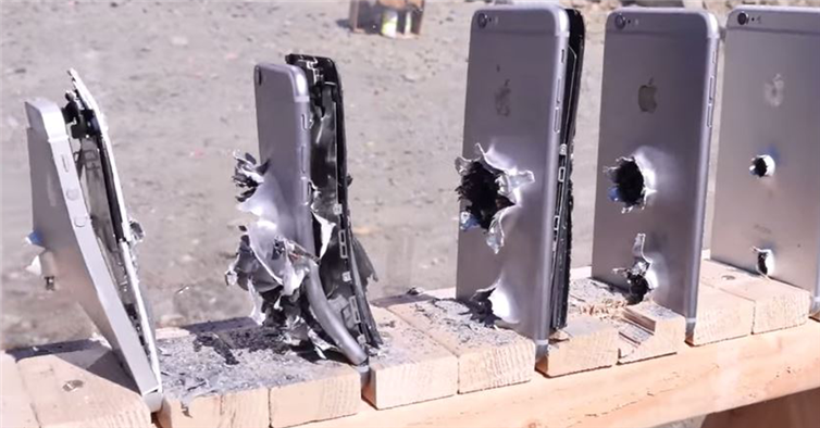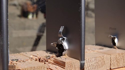 Il risultato? I primi 5 iPhone sono stati trafitti dal proiettile fino a rallentarlo, tanto che la pallottola ha disintegrato il sesto frantumandone il display. Gli altri 2 iPhone invece sono rimasti integri.