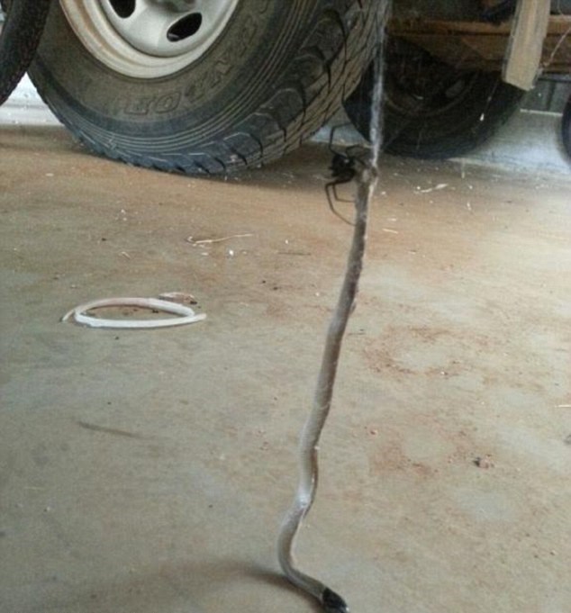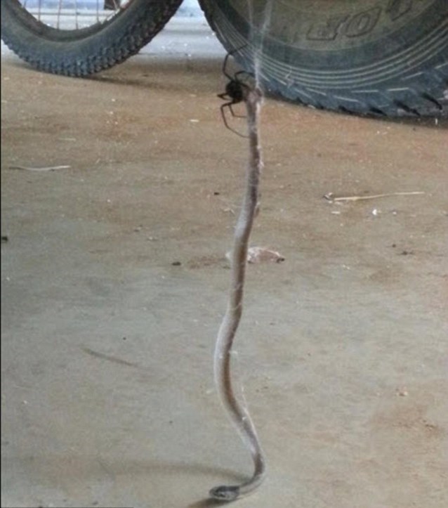 Il serpente inglobato nella ragnatela è anch’esso molto pericoloso: si tratta di un bruno orientale diffuso in Australia e Nuova Guinea. Questo rettile contiene talmente tanto veleno che sarebbe che con un solo morso potrebbe uccidere 20 persone.