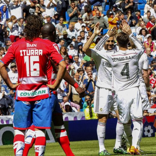 MADRID – Il Real Madrid batte il Granada 9-1 con cinque gol di Cristiano Ronaldo nel turno pasquale della Liga Spagnola. Dopo la rete iniziale di Bale al 25′ pt, Cristiano Ronaldo è andato a segno per tre volte nel giro di otto minuti, dal 30′ al 38′, mentre altri due gol li ha realizzati nella ripresa, così come Benzema. Per la squadra di Ancelotti c’è stata anche l’autorete di Mainz.