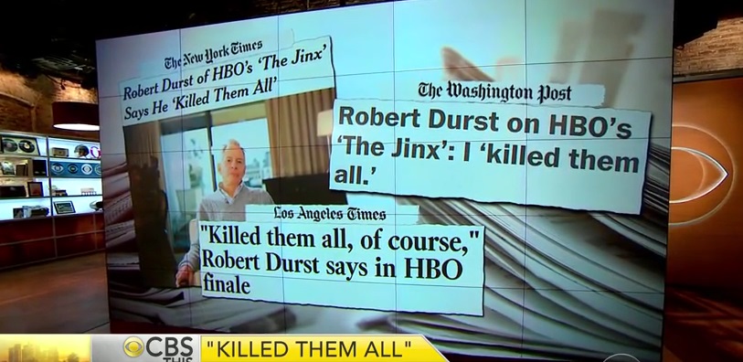 NEW YORK – Robert Durst confessa involontariamente in tv di aver ucciso tre oersone tra il 1982 e il 2003. Durst, bizzarro erede di una dinastia immobiliare di New York, era sospettato di tre misteriosi omicidi di donne tra 1982 e 2003: “Le ho uccise tutte”, ha mormorato Durst pensando di parlare da solo mentre le sue parole erano invece registrate al microfono del documentario The Jinx, la cui ultima puntata è andata in onda su HBO, 48 ore dopo il suo arresto a New Orleans in relazione a una delle tre morti.