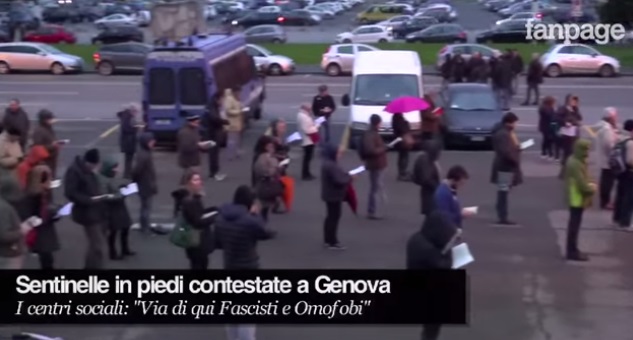 GENOVA – Tensione a Genova nei giorni scorsi, tra esponenti dei centri sociali e le “Sentinelle in piedi”, il movimento che si batte per il mantenimento della famiglia tradizionale che manifesta contro il ddl Scalfarotto che introduce il reato di omofobia: “Via di qui, bigotti, fascisti e omofobi” ripetono i giovani dei centri sociali alle sentinelle ferme in piazza della Vittoria.