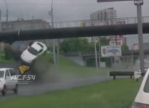 ROMA – Una porsche ha preso il volo salendo su un muretto posto a lato della carreggiata per poi atterrare alcuni metri dopo. Il video è stato girato a Novosibirsk, in Russia.