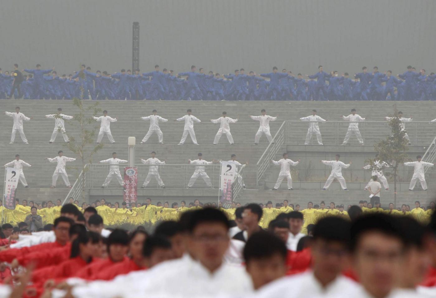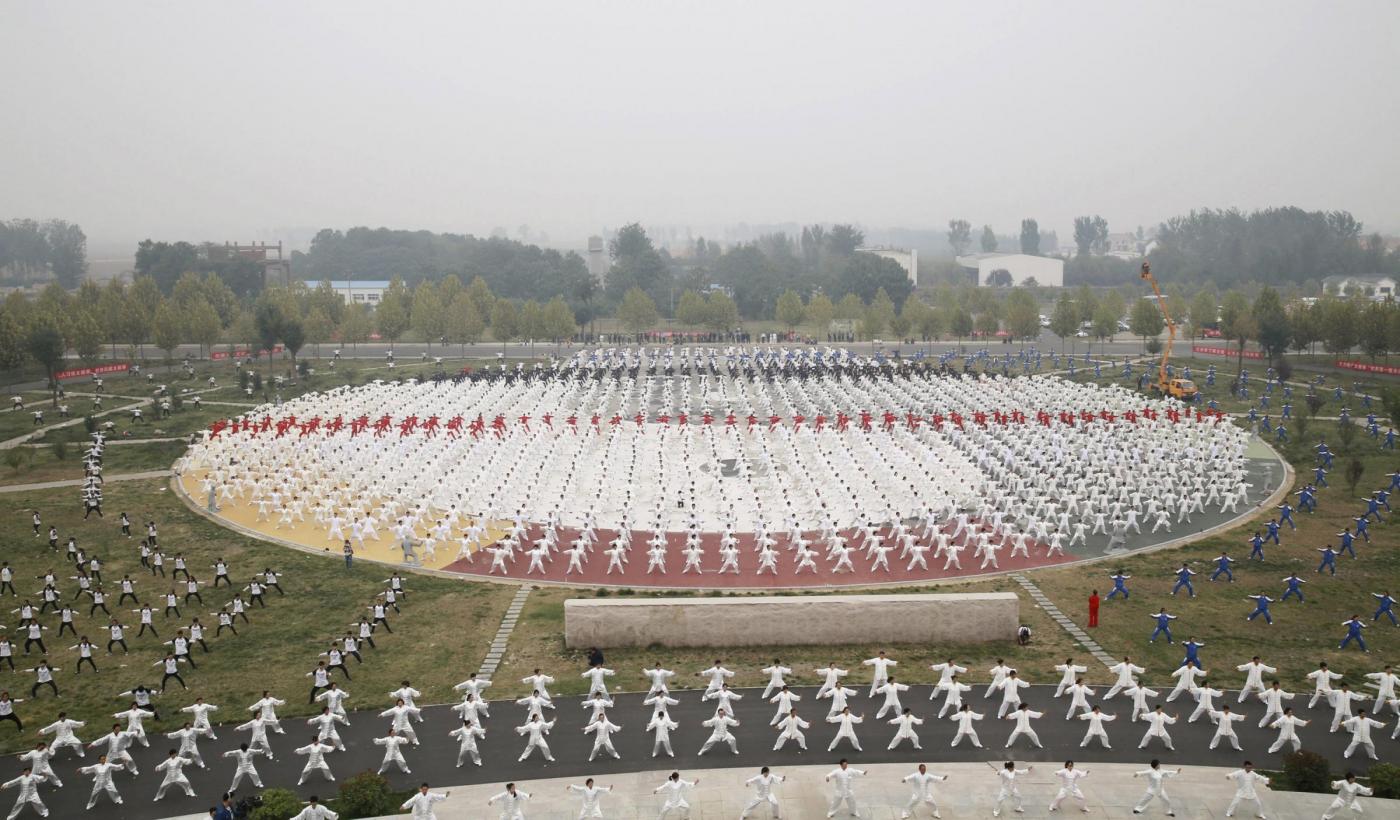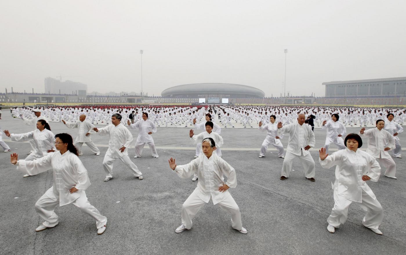 Ci saranno riusciti? A cercare di battere il record, la mattina di domenica 18 ottobre sono state mobilitate 50mila persone che si sono esibite nel tai chi simultaneamente in 15 luoghi diversi. Il tai chi è una tecnica di combattimento simile alla boxe. In Occidente è conosciuto soprattutto come ginnastica e come tecnica di medicina preventiva.