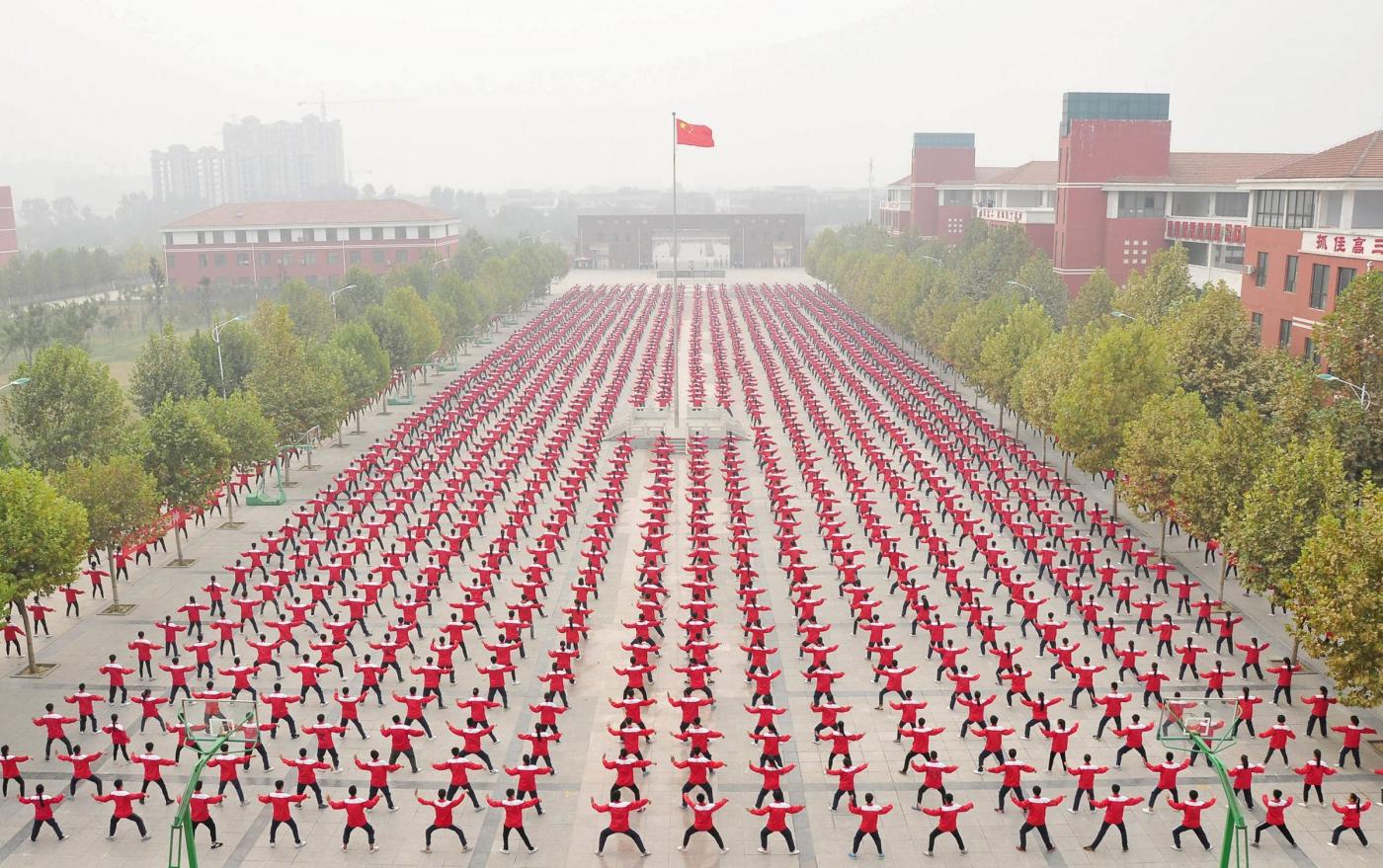 JIAOZUO (CINA) – Studenti del liceo praticano tai chi a Jiaozuo nella provincia cinese di Henan, nel tentativo di creare la più grande dimostrazione di arti marziali al mondo e ottenere il Guinness dei primati.