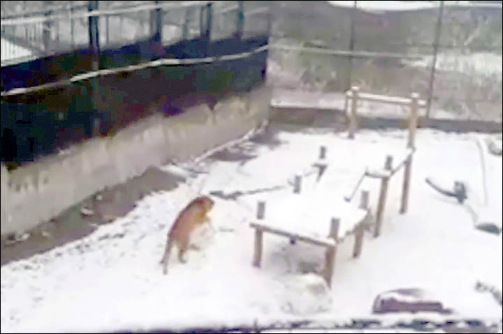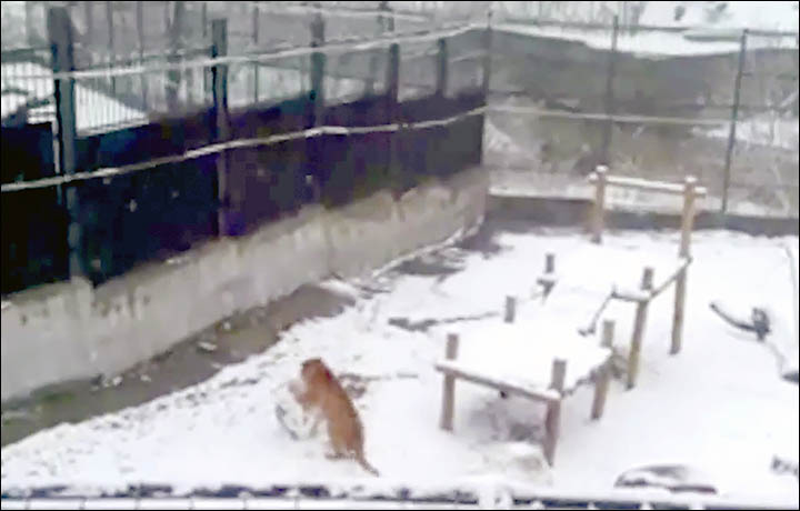 KALININGRAD (RUSSIA) – Tanya è una tigre siberiana che vive nello zoo di Kaliningrad, città russa che si affaccia sul mar baltico. La tigre, tre anni fa ha cominciato a fare delle enormi palle di neve nella sua gabbia. Gli inservienti dello zoo hanno studiato il suo comportamento ed hanno scoperto che il felino ha trovato un modo per passare il tempo e per intrattenersi giocando con la neve. Tanya è così diventata un’attrazione dello zoo. La portavoce della struttura Ekaterina Mikhailova a Siberian Times ha spiegato: “Una mattina, alcuni zoologi sono venuti a studiare Tanya ed hanno trovato le palle di neve. Nessuno pensava che la tigre fosse in grado di realizzarle da sola. Gli zoologi pensavano che qualcuno avesse scherzato gettando queste grandi palle di neve nella gabbia, ma una sera hanno visto Tanya all’opera e si sono ricreduti”. la direttrice Svetlana Sokolova ha raccontato che le palle di neve sono cominciate tre anni fa ed ha aggiunto che ” Tanya non ama farle alla luce del giorno. Preferisce raccogliere la neve solo di notte”.