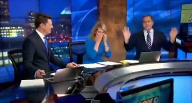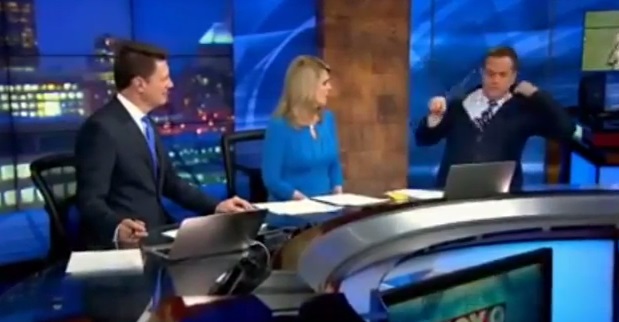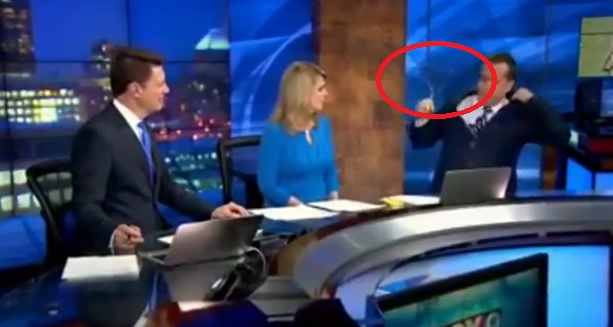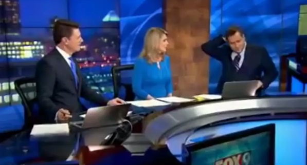 MINNEAPOLIS – Telegiornale Fox9 del Minnesota: al momento di commentare le previsioni del tempo, il meteorologo si accorge di avere attaccata una gruccia che era rimasta incastrata dietro la gruccia. L’inconveniente scatena una risata incontenibile in studio.