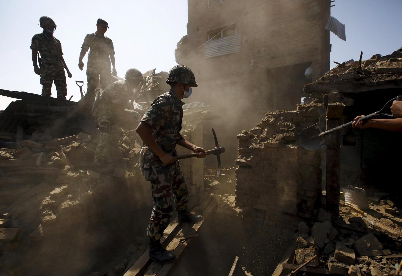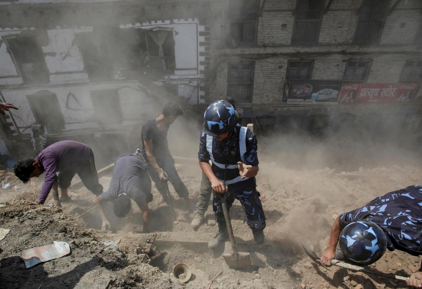 Il Paese, intanto, continua a tremare. Dovranno passare settimane perché le scosse si plachino dopo un evento forte come quello di sabato, di magnitudo 7.9 della scala Richter. Da allora sono state 45 le repliche superiori ai 4.5 gradi, 15 quelle più forti di 6.5 gradi. Lo sciame sismico, con un fronte di 150 chilometri, si sta spostando ad Est. E nessuno può escludere che un altra scossa della stessa forza di quella di sabato, o persino più forte, si possa verificare. A seguire alcuni video YouTube e le foto pubblicate dalla Reuters.