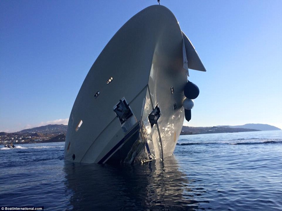 Nessuno sa perché l’imbarcazione, una Custom Line Navetta da 4,5 milioni di euro, sia affondata tra le spiagge di Psarou e Platis Gialos davanti agli occhi incuriositi dei bagnanti.