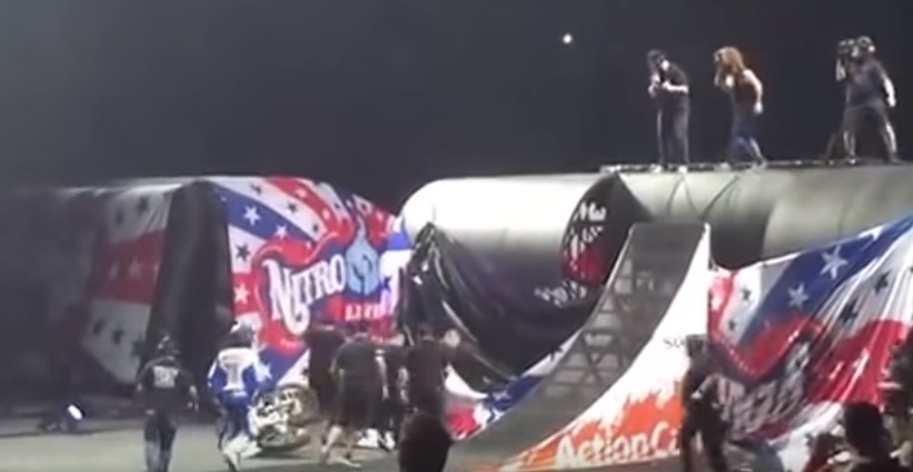 GLASGOW – YOUTUBE Acrobata con due spettatori a bordo cade da rampa. Il Nitro Circus ha fatto tappa a Glasgow in Scozia. Durante l’esibizione, uno degli acrobati ha voluto in sella alla sua moto anche due volontari scelti tra il pubblico. La salita sulla rampa non è però riuscita e il veicolo non ha spiccato il salto: i tre passeggeri, i due del pubblico e lo stuntman, sono per così finiti a terra sulla pista.